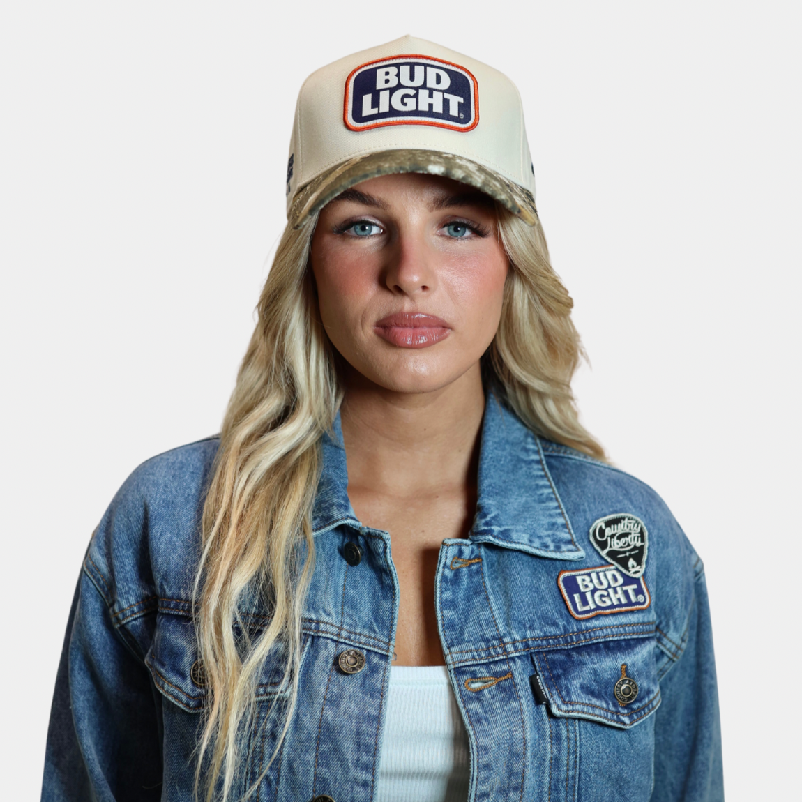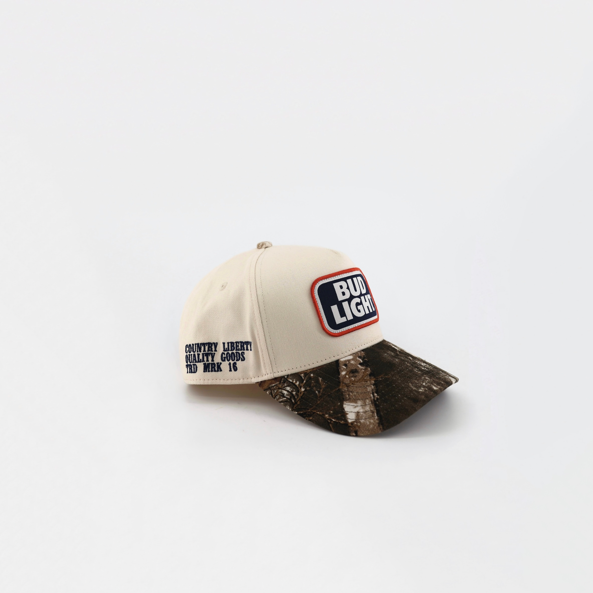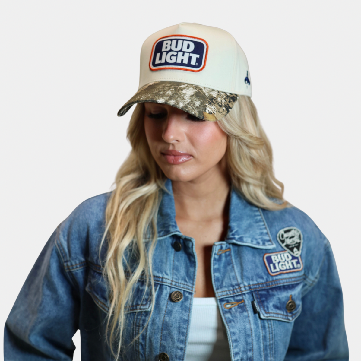 Keep it cool this summer with the Country Liberty x Bud Light Two-Tone Camo Hat. Featuring a standout two-tone camo design and an adjustable A-frame fit, this hat is made for sunny days, cold beers, and good times with friends. Perfect for tailgates, barbecues, or just kicking back in style.