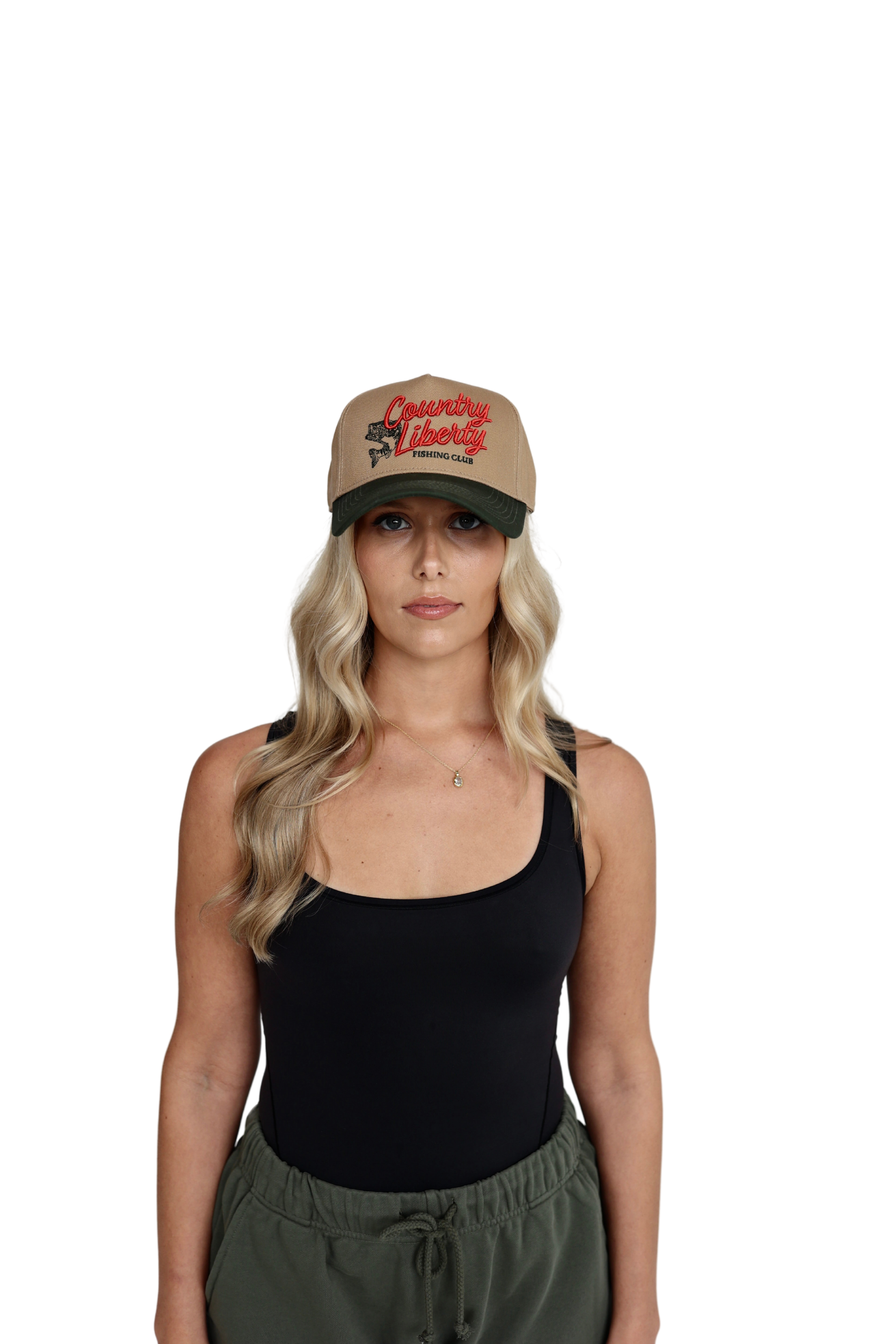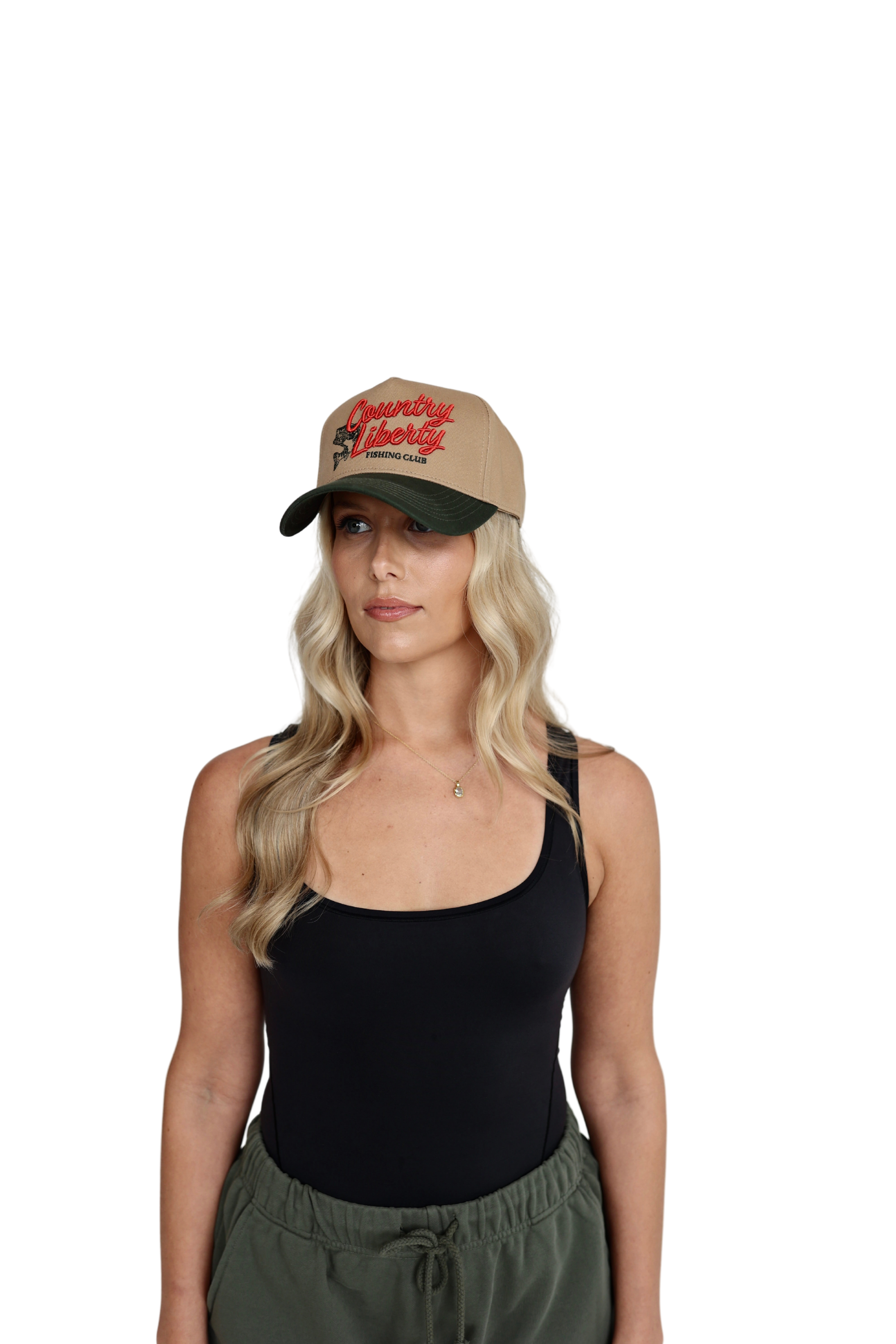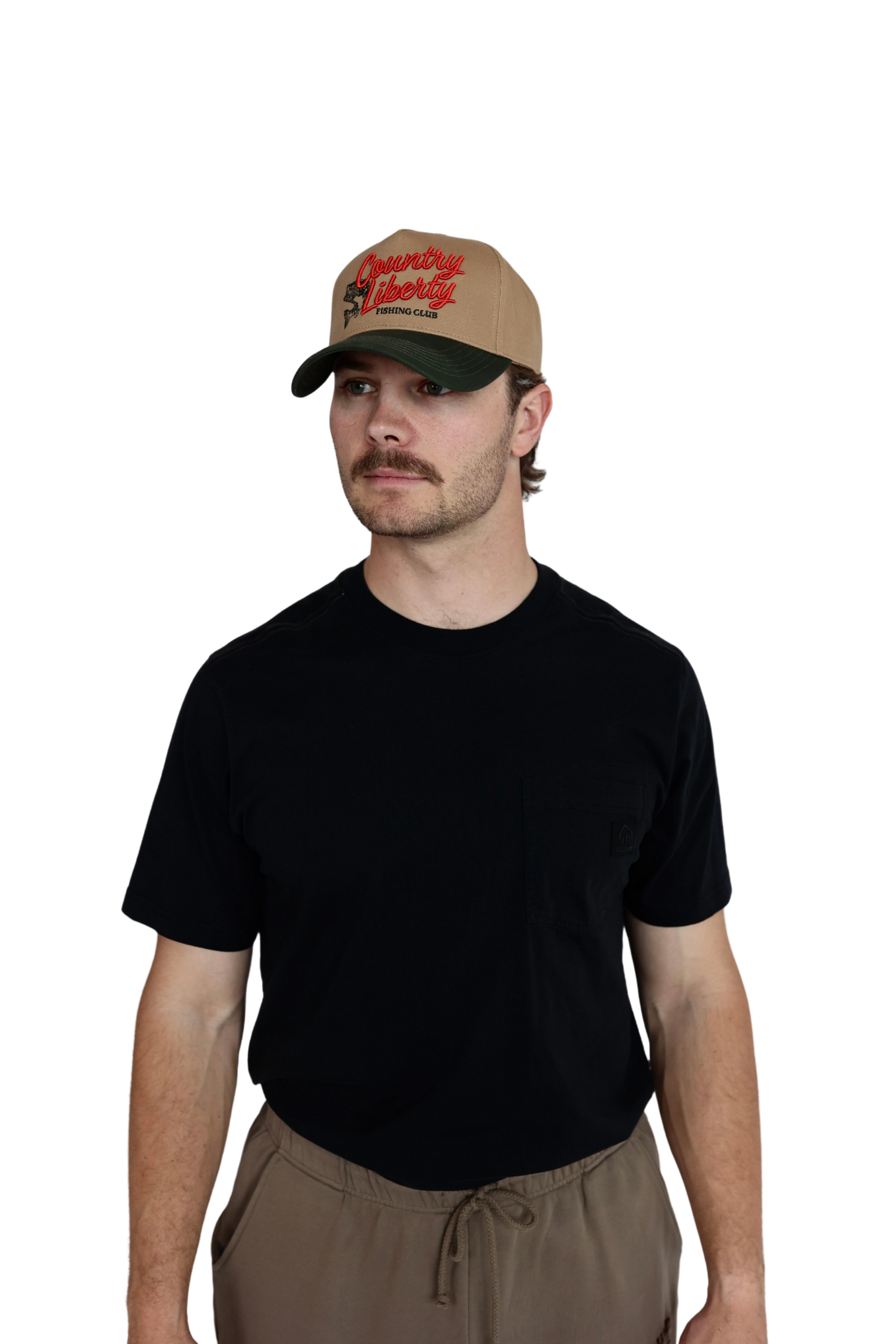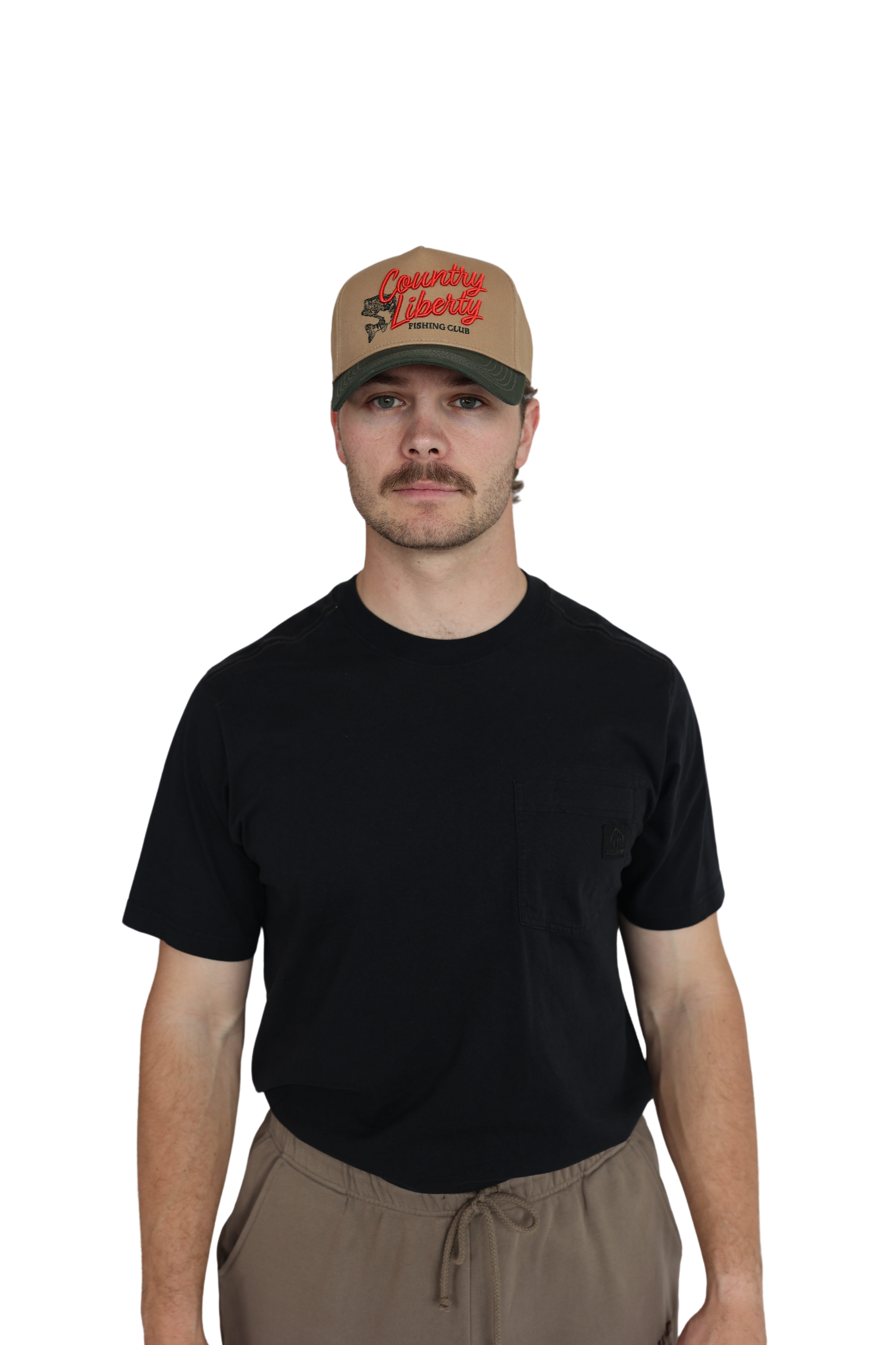 A brand new design for summer — inspired by vintage bar signs and laid-back days on the water. This two-tone cap features our bold Country Liberty Fishing Club embroidery and classic A-frame fit. A go-to lid for fishing trips, road beers, and weekends at the cabin.