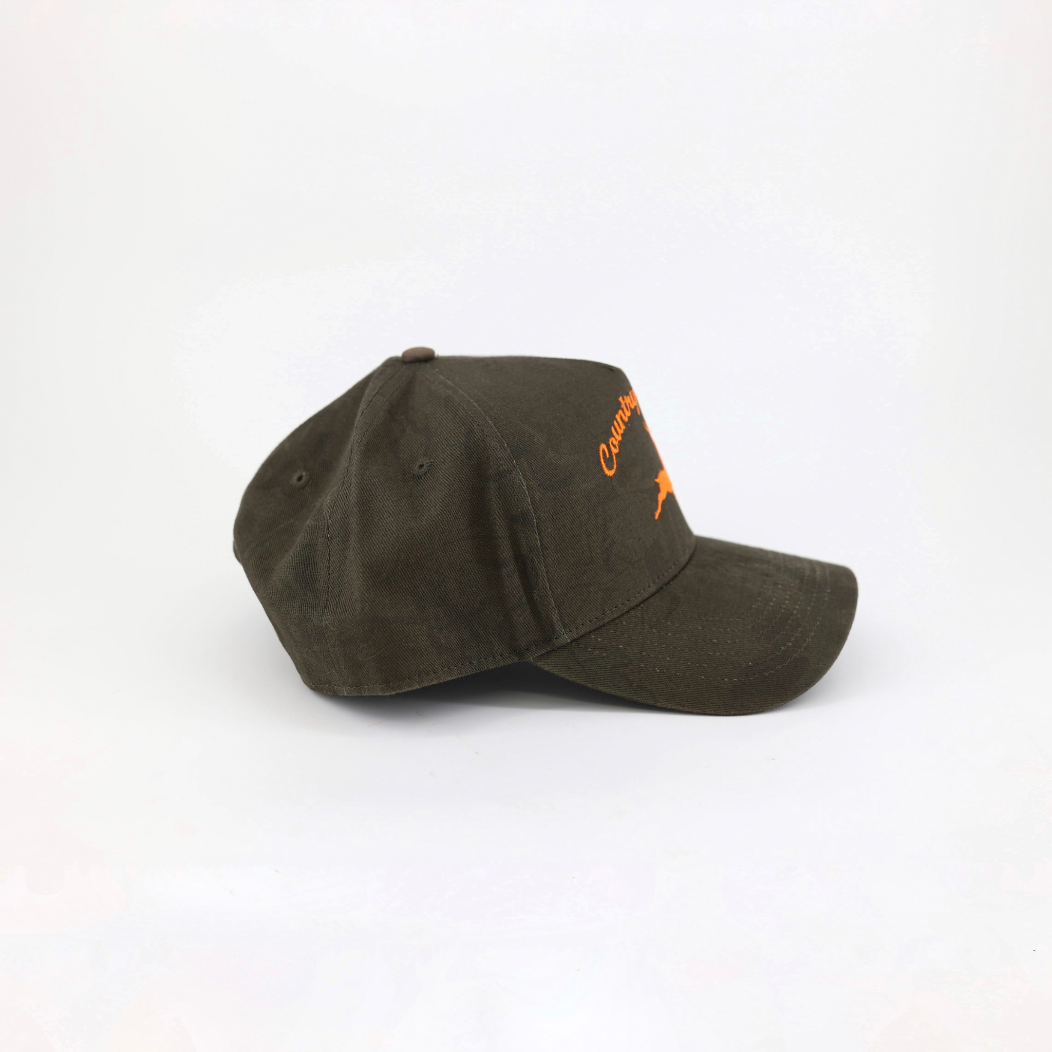 A fresh spin on a classic. This structured A-frame snapback features our brand new custom camo print, paired with high-contrast blaze orange embroidery up front. Built for long days outside and easy summer wear, it’s the kind of hat that goes with everything and stands out just enough.