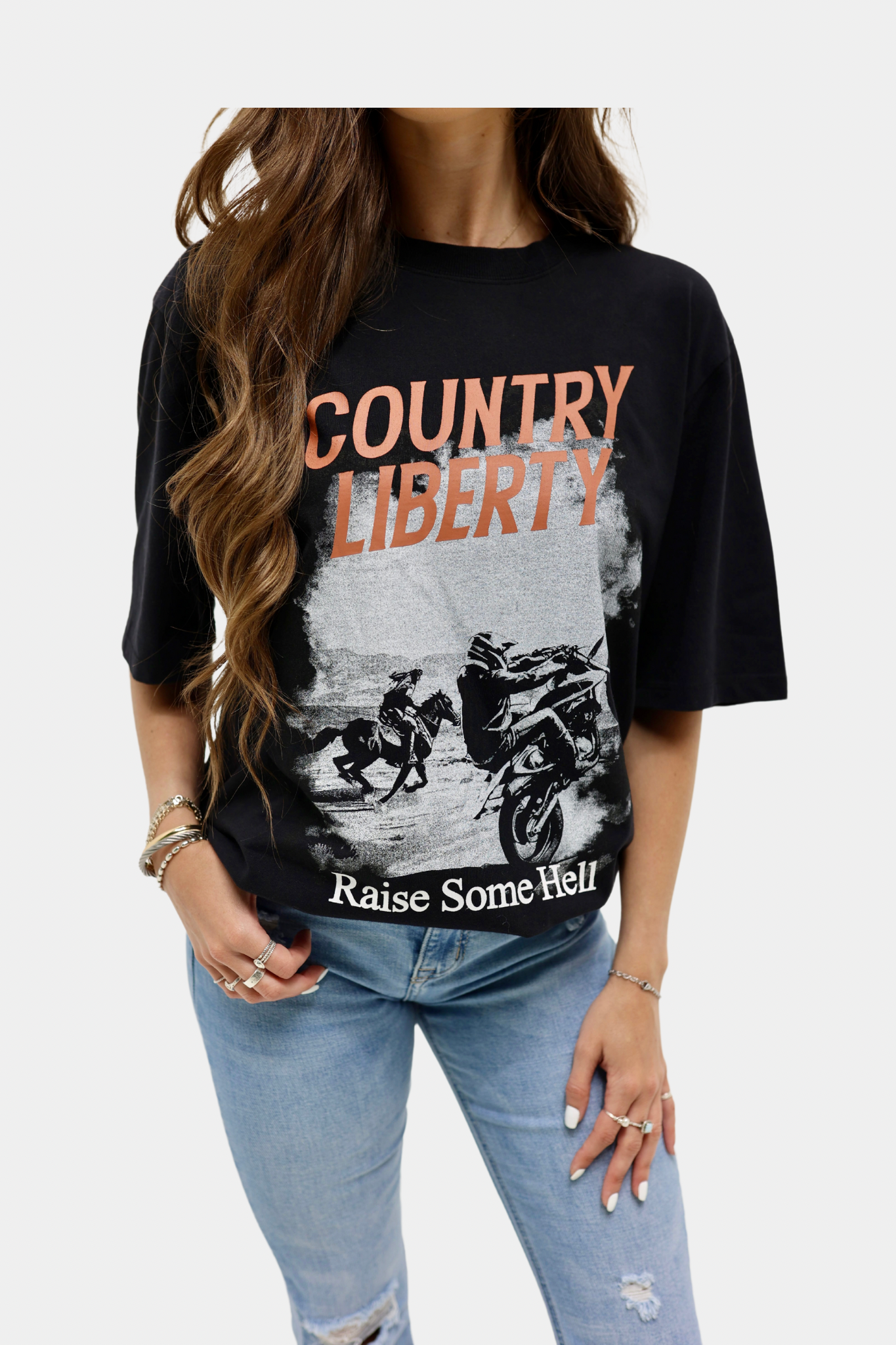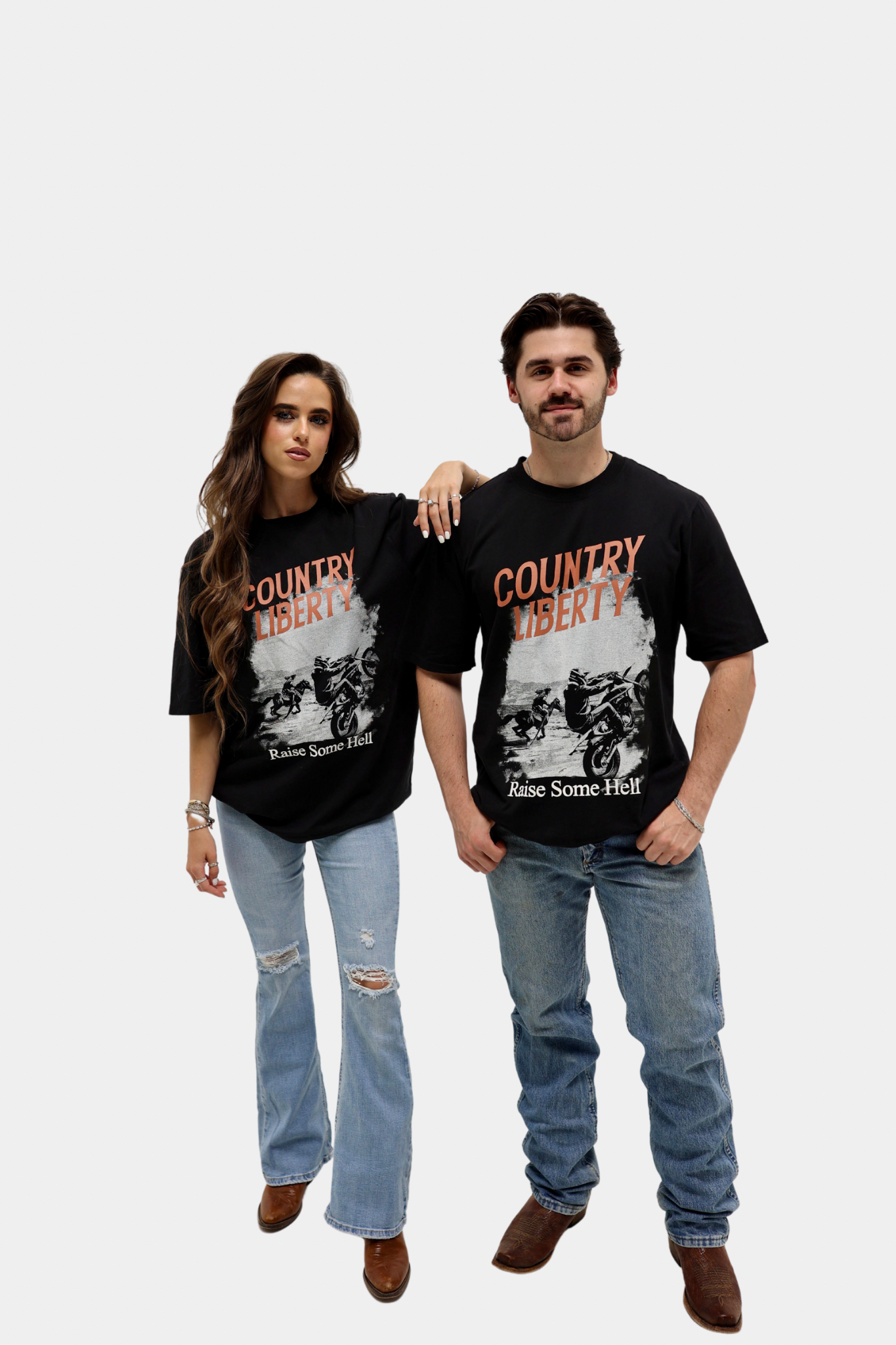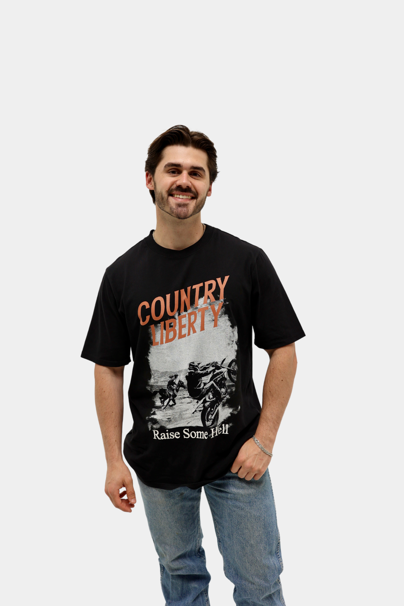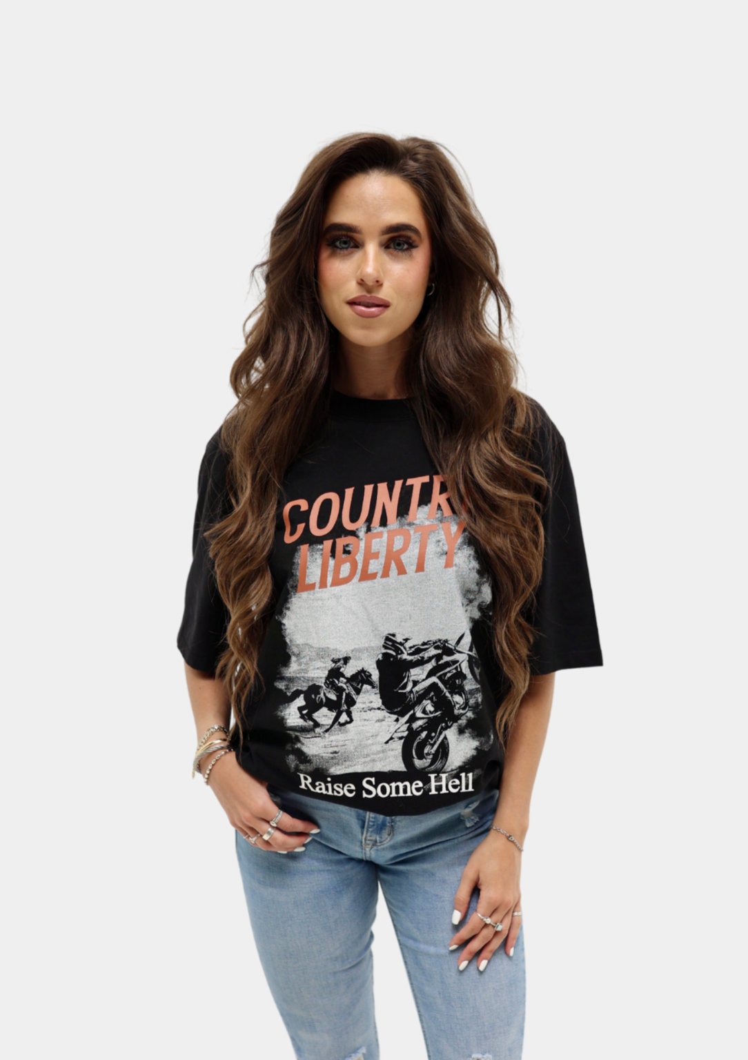 This Raise Some Hell tee is a bold statement piece for those who live on the wild side. Featuring an edgy graphic and vintage-inspired design, this black tee offers comfort with a rebellious flair. Perfect for a day out or rocking that rock-n-roll vibe.