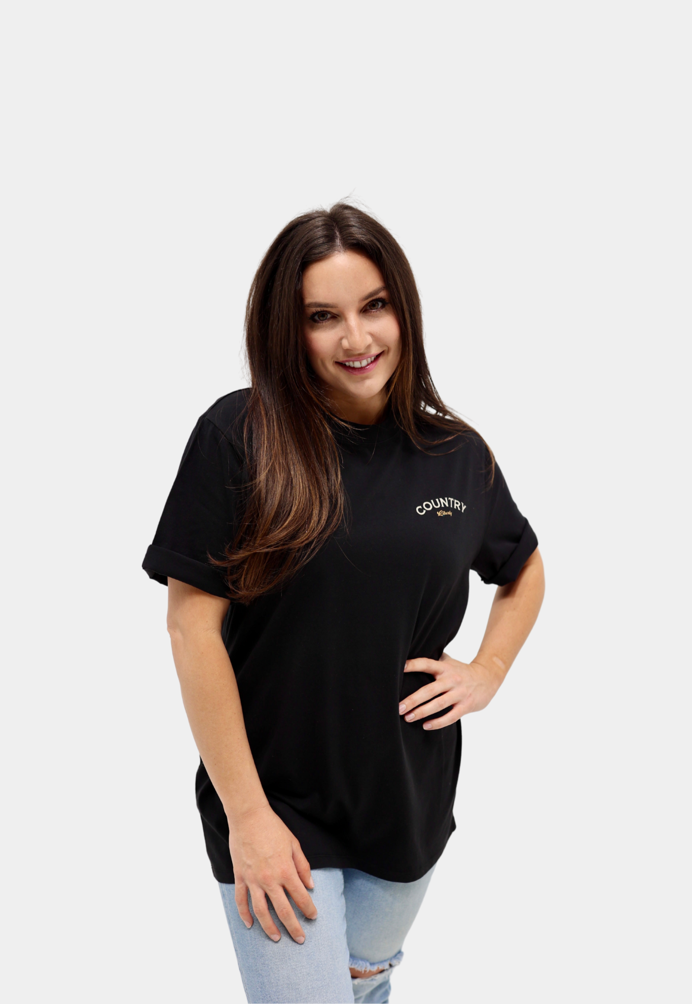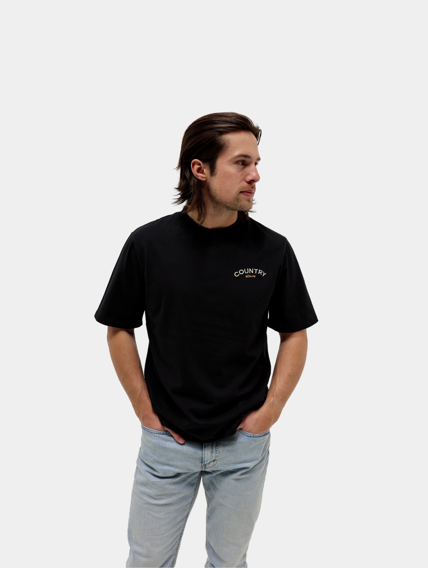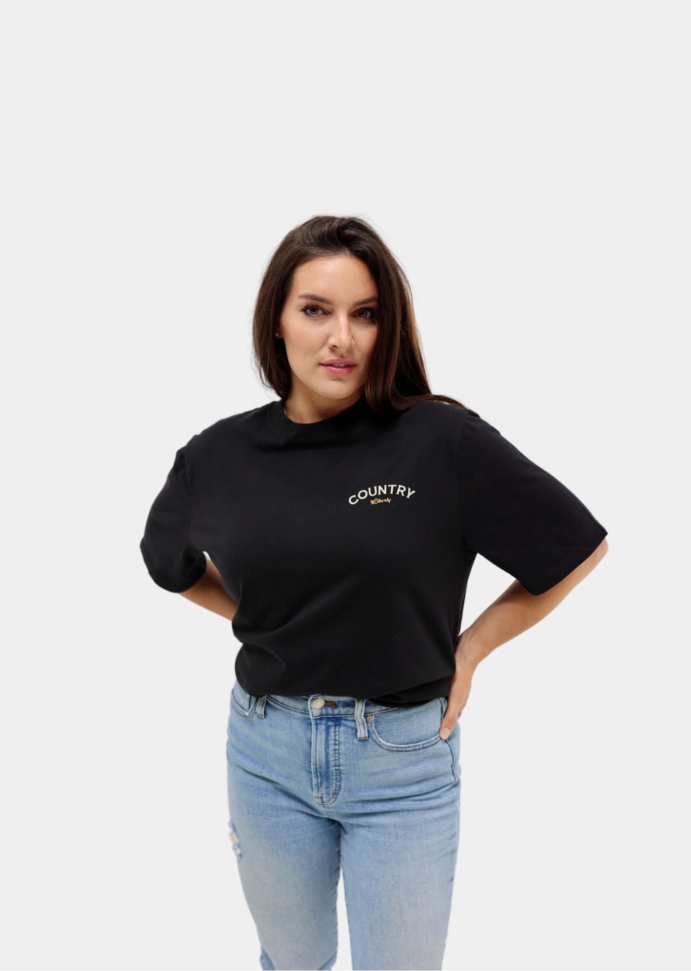 This all-black shirt throws it back with a powerful cream bronc print across the back and “country liberty” stitched above the action. Worn-in feel, rodeo-ready energy.