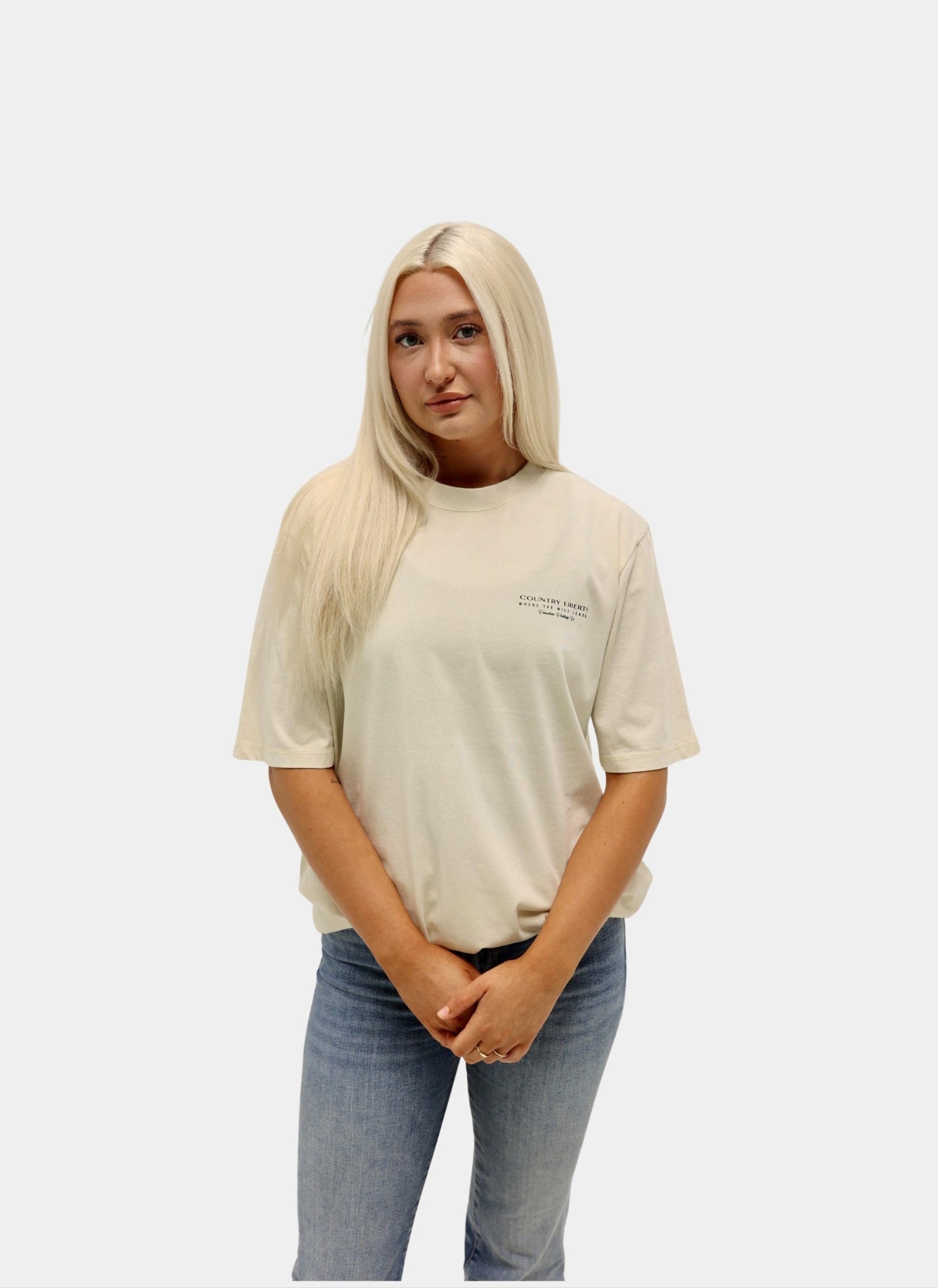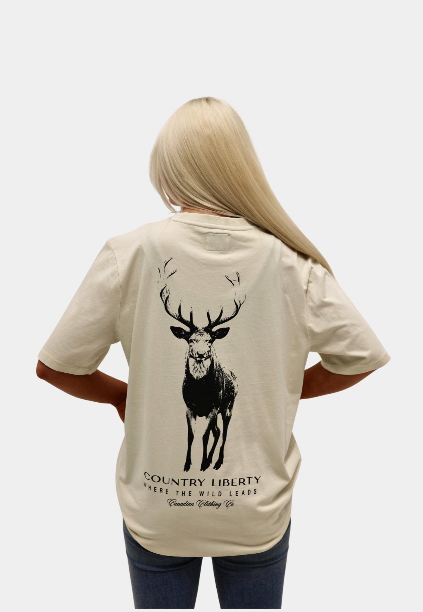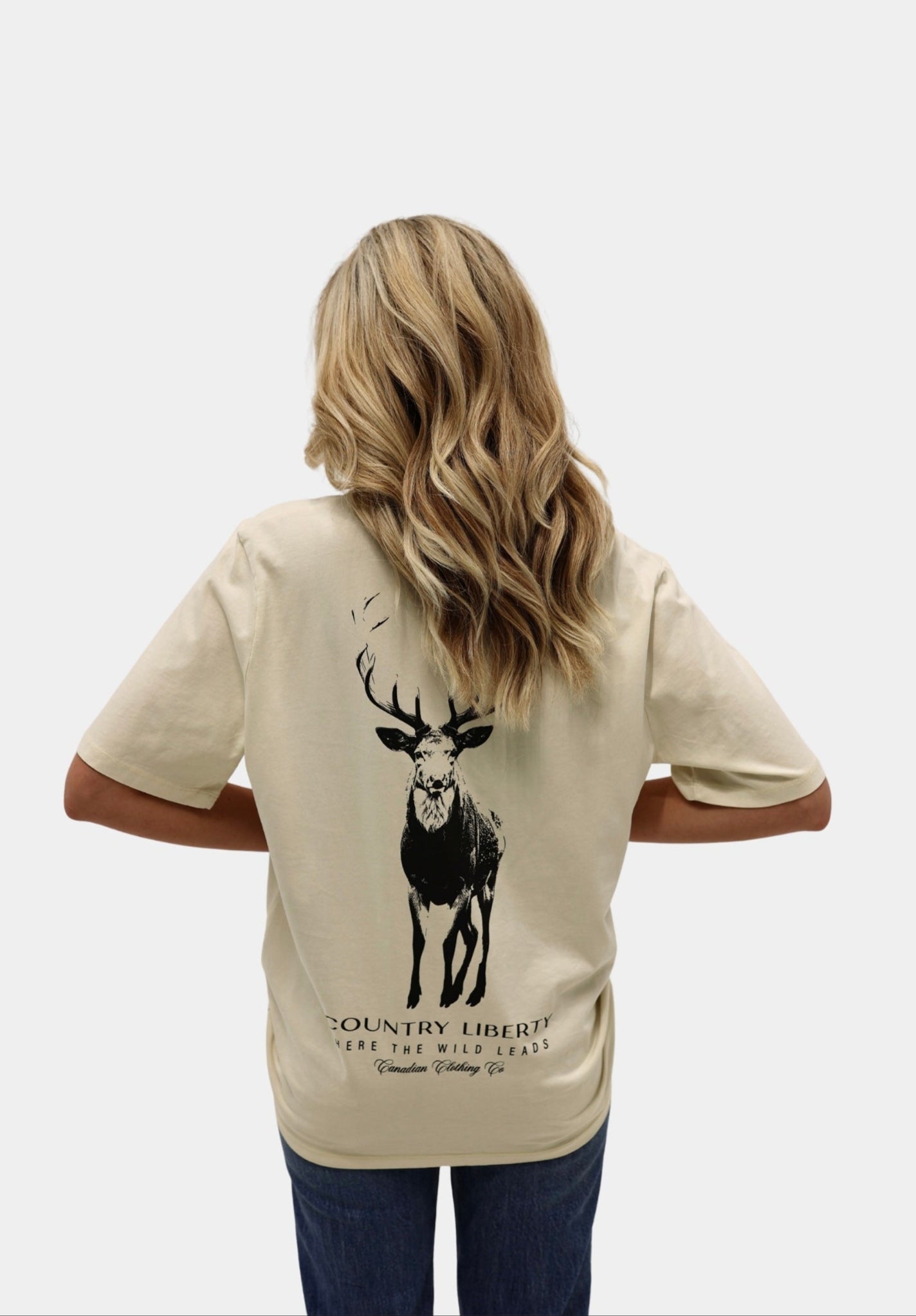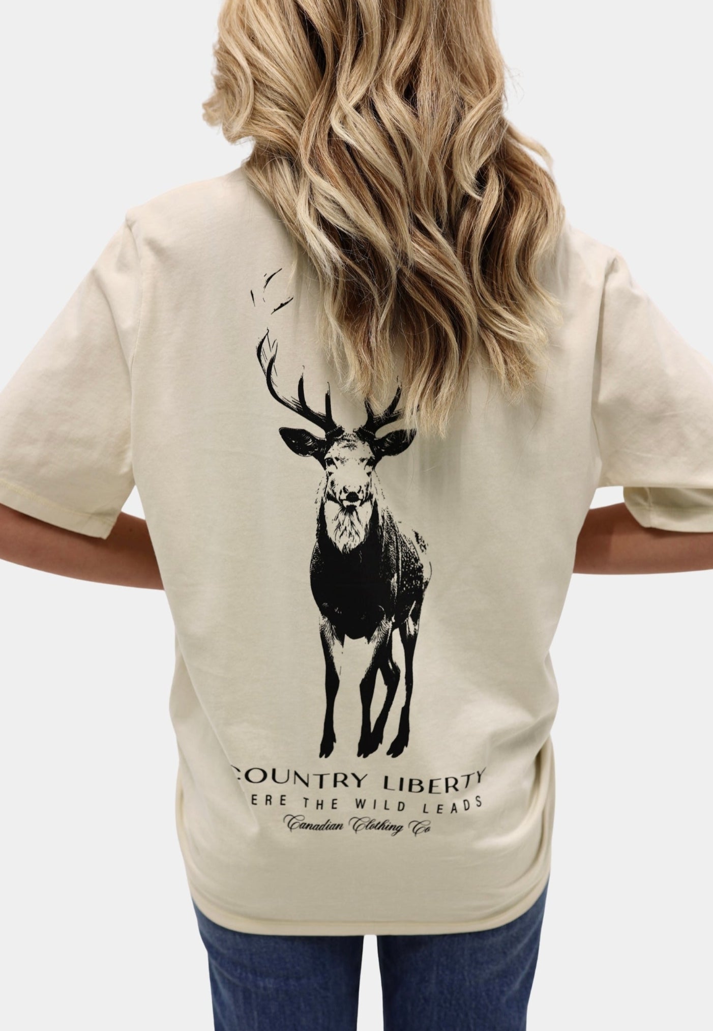 This cream tee features a detailed buck graphic on the back that adds a natural edge to your festival rotation. The oversized fit works well for outdoor events, concerts, or casual wear, while the bold design gives it some personality without being over the top. A solid choice for anyone who likes their festival gear with a bit of wilderness attitude.