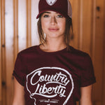 The "Classic Country Liberty Collection" features an array of items, each proudly displaying the iconic, original Country Liberty Guitar pick logo designed in 2014. Celebrate the enduring spirit of country music with this timeless collection of apparel, accessories, and more.
