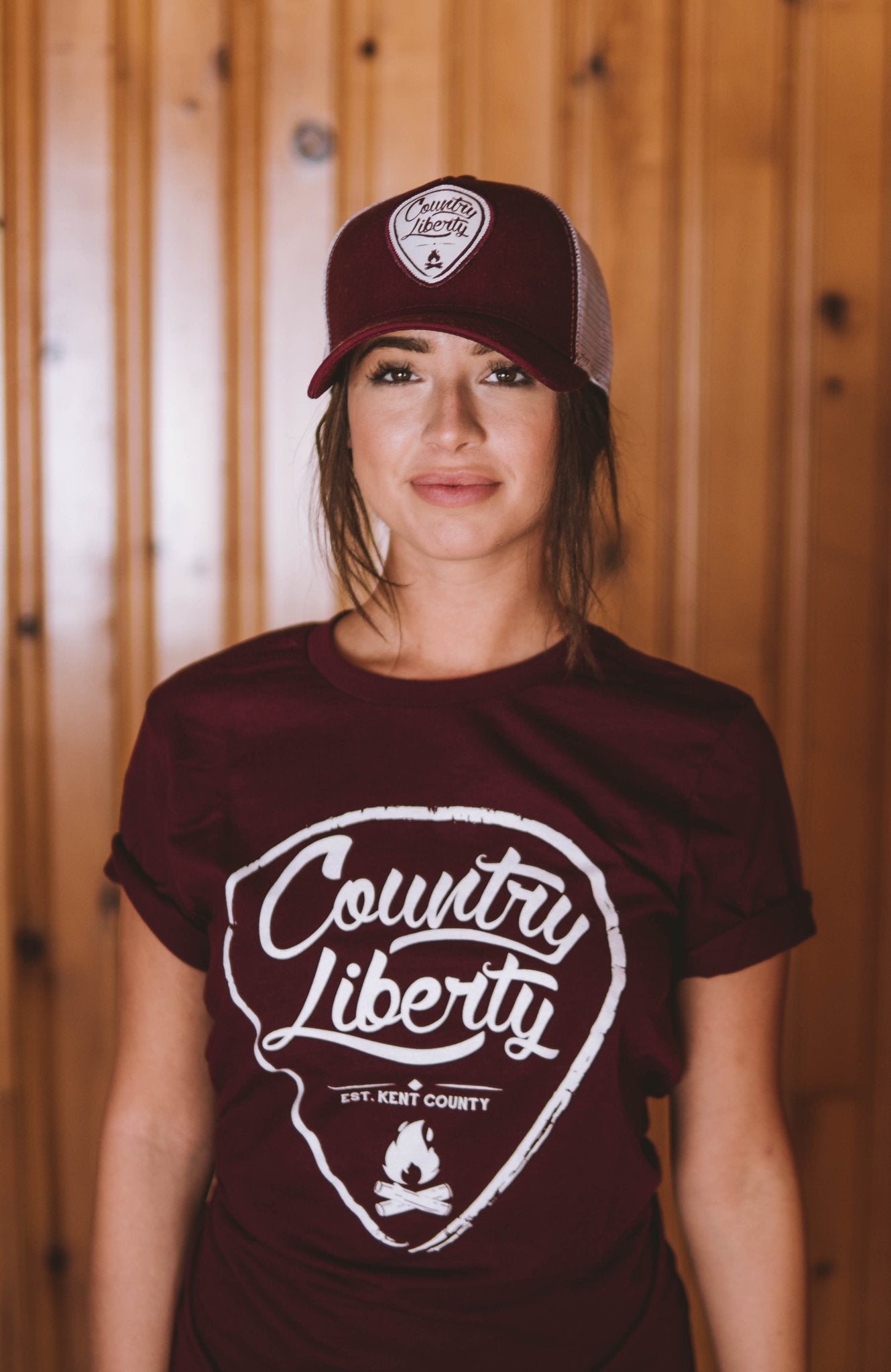 The "Classic Country Liberty Collection" features an array of items, each proudly displaying the iconic, original Country Liberty Guitar pick logo designed in 2014. Celebrate the enduring spirit of country music with this timeless collection of apparel, accessories, and more.