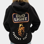 The Black Wrangler Hoodie delivers warmth with a wild side. Featuring the signature Bud Light x Country Liberty cowboy graphic, this hoodie blends cozy fleece comfort with bold country style. Perfect for bonfires, beer runs, and weekends off the grid.