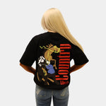 A bold black graphic tee that taps into vintage western iconography, inspired by classic cowboy campaign aesthetics. The oversized print and rugged feel give it a standout edge, perfect for festival crowds or laid-back weekends.