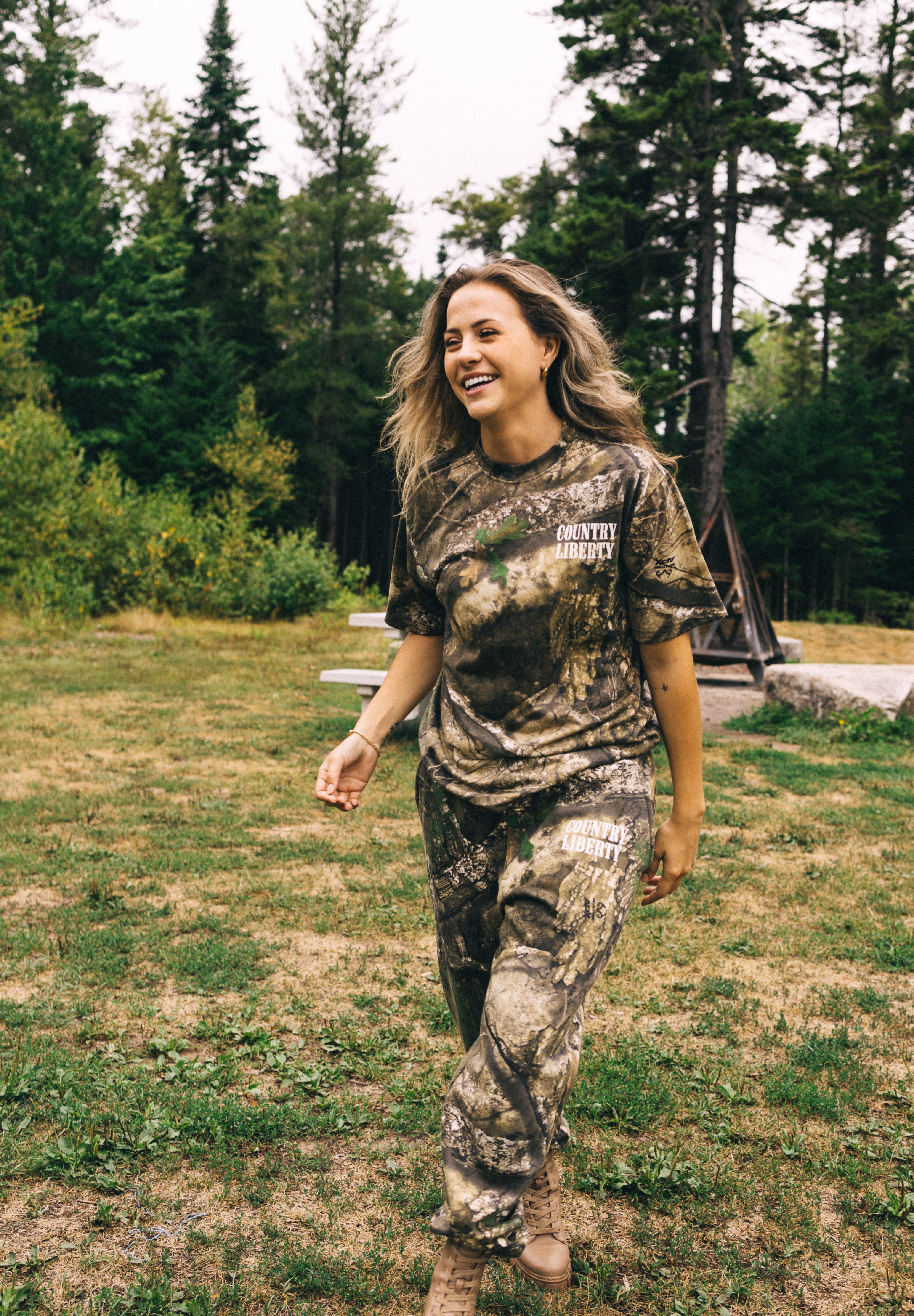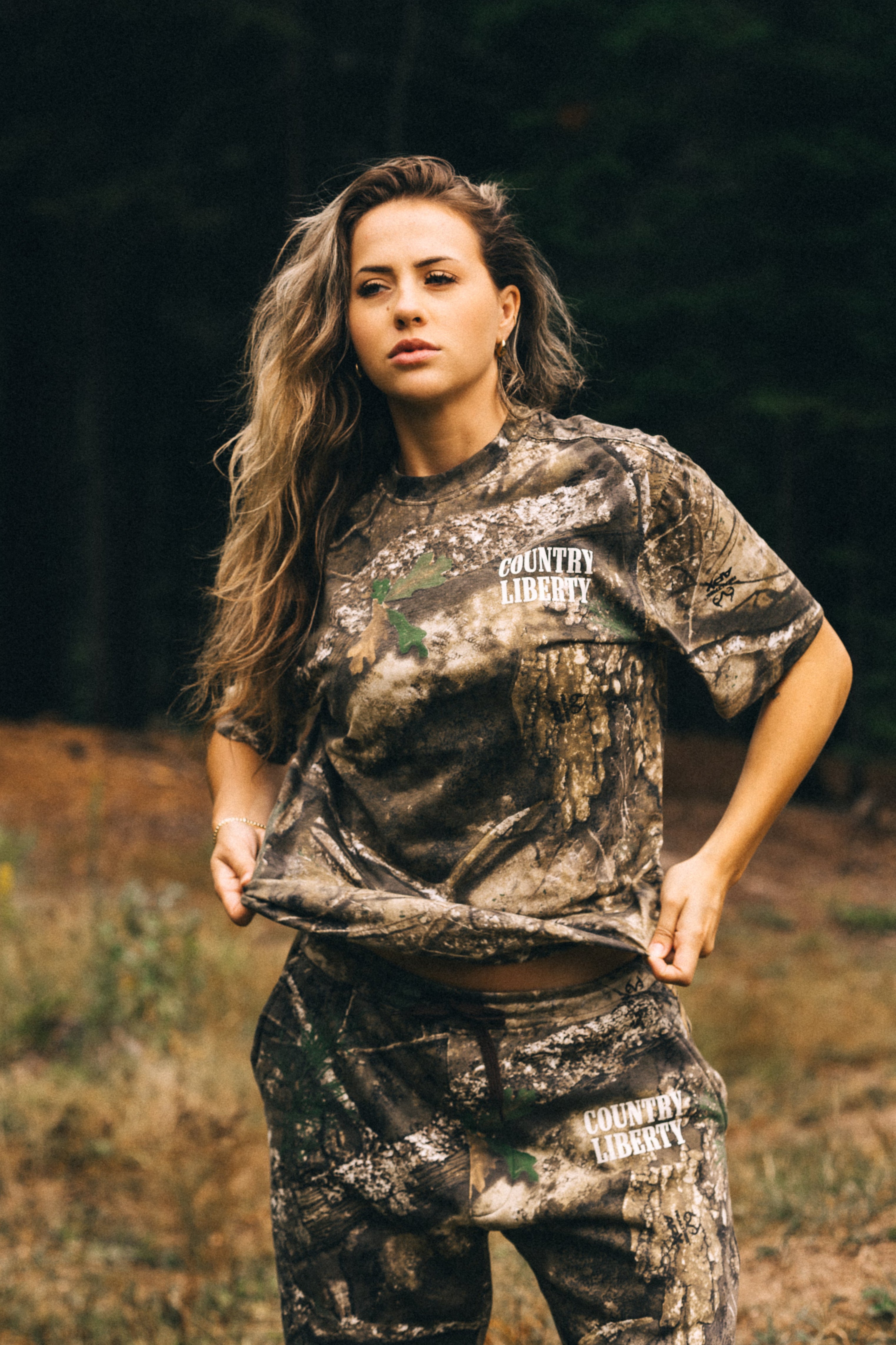 I LOVE these pants. I have literally worn them so much I have wore the Country Liberty right off of the leg. I picked myself up another pair to store for later in case I somehow ruin my first pair. The matching set is perfect for lounging but also for those days where you don’t really feel like gearing up heavy to go to the woods!