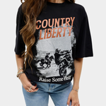 This Raise Some Hell tee is a bold statement piece for those who live on the wild side. Featuring an edgy graphic and vintage-inspired design, this black tee offers comfort with a rebellious flair. Perfect for a day out or rocking that rock-n-roll vibe.