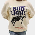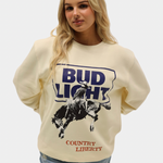 Meet the Maverick Crew — where comfort meets country. This natural crewneck features a bold Bud Light x Country Liberty graphic that brings western grit to laid-back style. Soft, cozy, and made for cooler days (and colder beers).