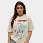 Inspired by classic rodeo posters and small-town grit, this tee captures the spirit of adventure with a distressed graphic design, bronc overlay, and signature country liberty type.