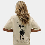 This cream tee features a detailed buck graphic on the back that adds a natural edge to your festival rotation. The oversized fit works well for outdoor events, concerts, or casual wear, while the bold design gives it some personality without being over the top. A solid choice for anyone who likes their festival gear with a bit of wilderness attitude.